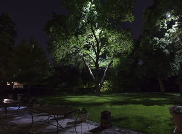 Twinkling lights transform nature.